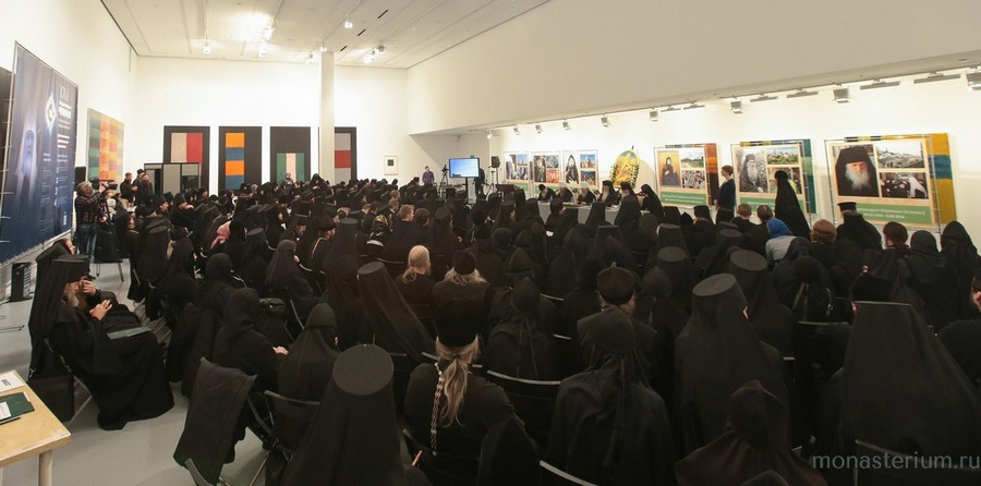 С кратким приветствием к монашествующим обратилась О.В. Нестерцева, заместитель директора Мультимедиа Арт музея на Остоженке, гостеприимно принявшего в своих стенах насельников монастырей. Ольга Валериановна пригласила гостей Арт музея посетить выставку, посвященную жертвам политических репрессий, обратив внимание на тот факт, что один из разделов выставки – это рассказ о Бутовском полигоне. В Бутове погребено около 1000 человек, пострадавших за православную веру. Более 300 из расстрелянных на полигоне священнослужителей причислено к лику святых.