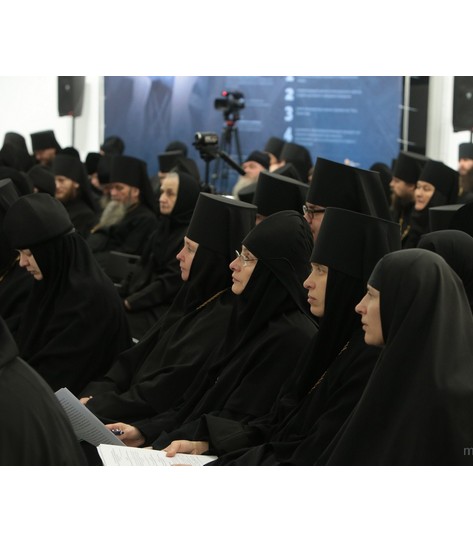 Второй день работы монашеского направления. По окончании богослужения начались семинар «»Покаяния двери»: современная монашеская жизнь как путь ко спасению и совершенству» (председатель – митрополит Нижегородский и Арзамасский Георгий; куратор – игумения София (Силина), настоятельница Воскресенского Новодевичьего женского монастыря г. Санкт-Петербурга) и заседание круглого стола «Монашеские обеты и свобода личности» (председатель – митрополит Святогорский Арсений, наместник Свято-Успенской Святогорской лавры; куратор – игумения Елисавета (Позднякова), настоятельница ставропигиального женского монастыря Марфо-Мариинская обитель милосердия), участники которых обсудили возможности решения практических задач современной монашеской жизни.