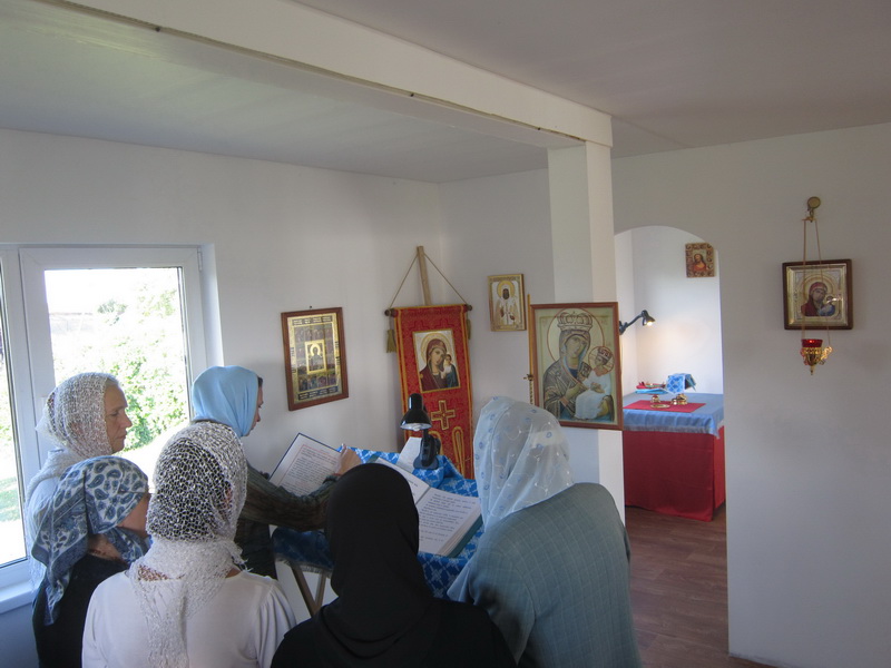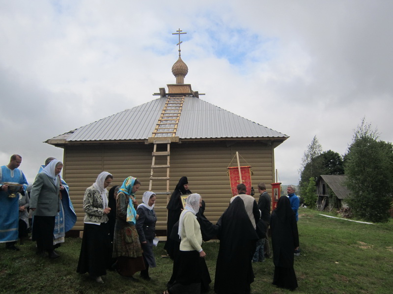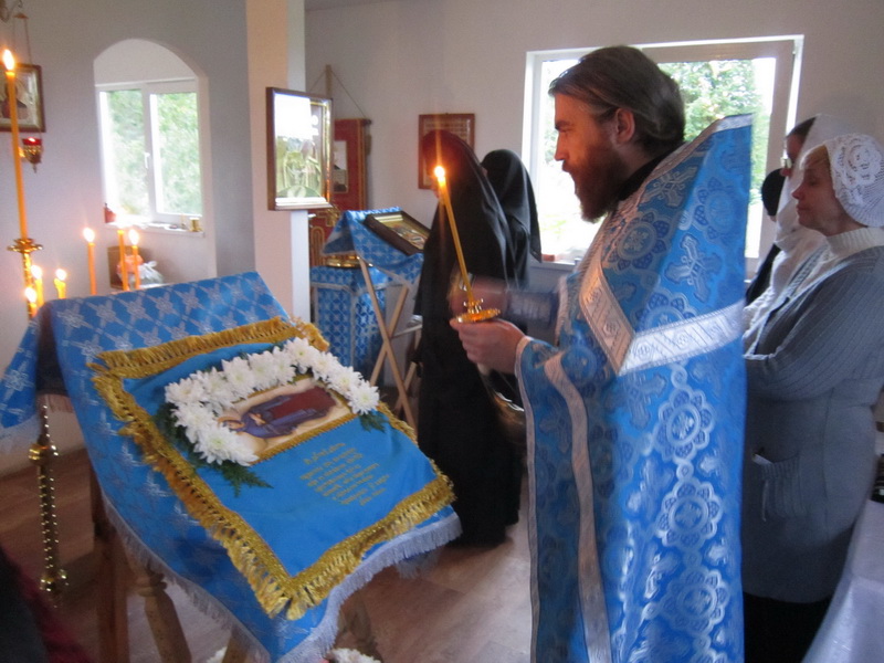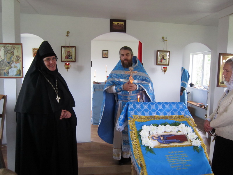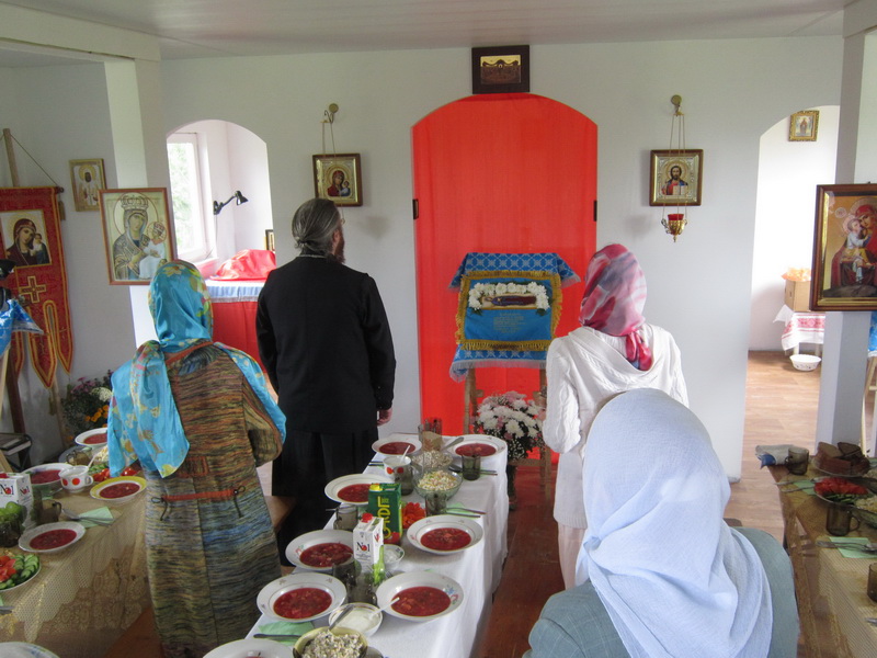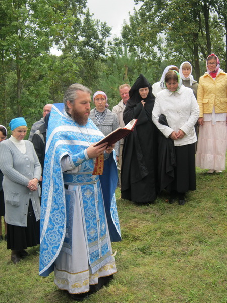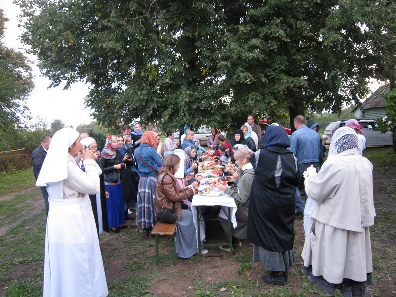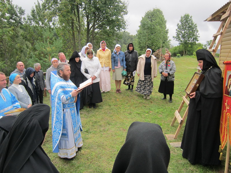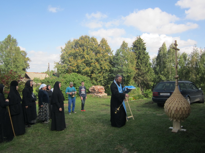Всё лето, не покладая рук, трудились в Слободе мастера-строители Борис, Игорь и Михаил. Их стараниями палатка, наскоро возведённая в прошлом году на месте древнего Успенского собора, превратилась в часовню. Здесь и состоялось праздничное богослужение. Увенчал часовню небольшой деревянный куполок, сделанный талантливым прихожанином Свято-Георгиевского храма Леонидом Неверовским. 27 августа, накануне всенощного бдения, иерей Александр Голубев совершил чин освящения креста, сооружённого на куполе, затем купол и крест были установлены на часовне. Конечно, немногочисленным насельницам Свято-Успенской обители сложно было бы самим подготовить часовню и монастырскую территорию к празднику. Но откликнулись паломники, давние друзья нашей обители – из Витебска, Молодечно, Вилейки.