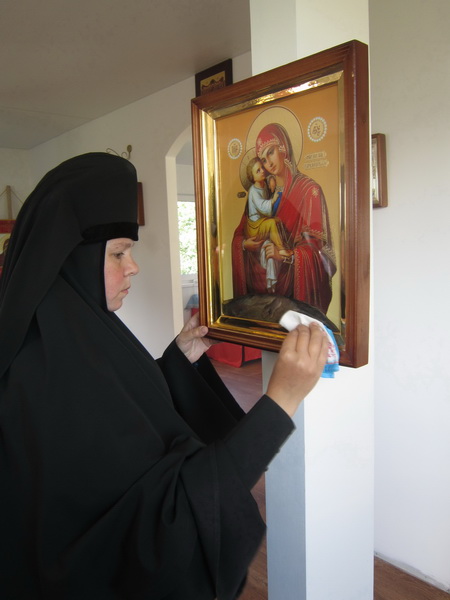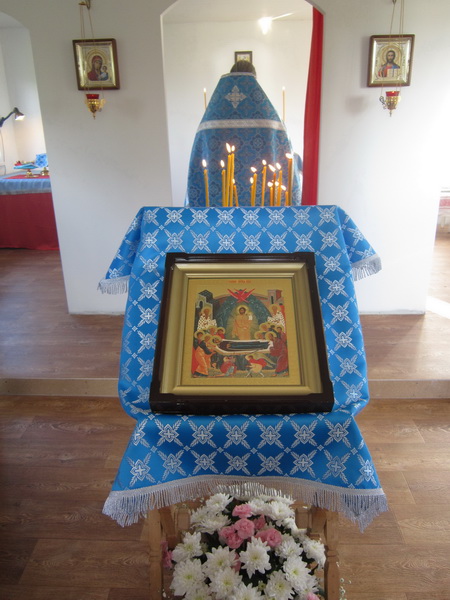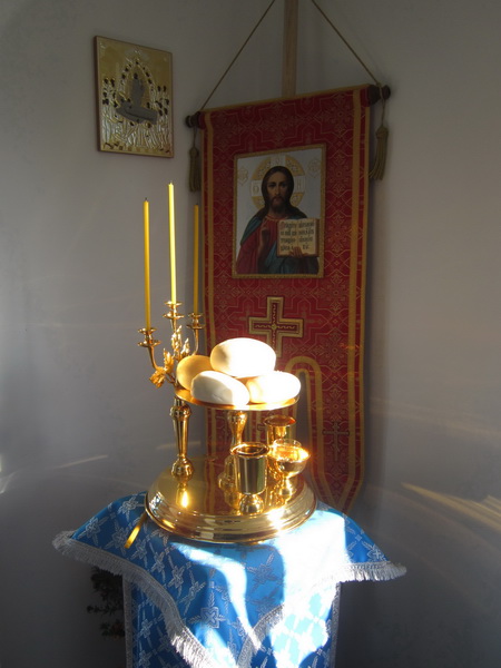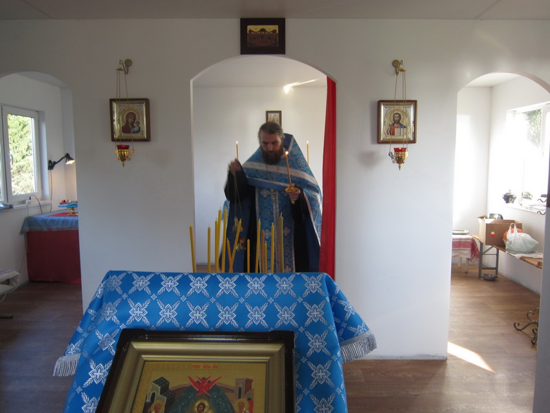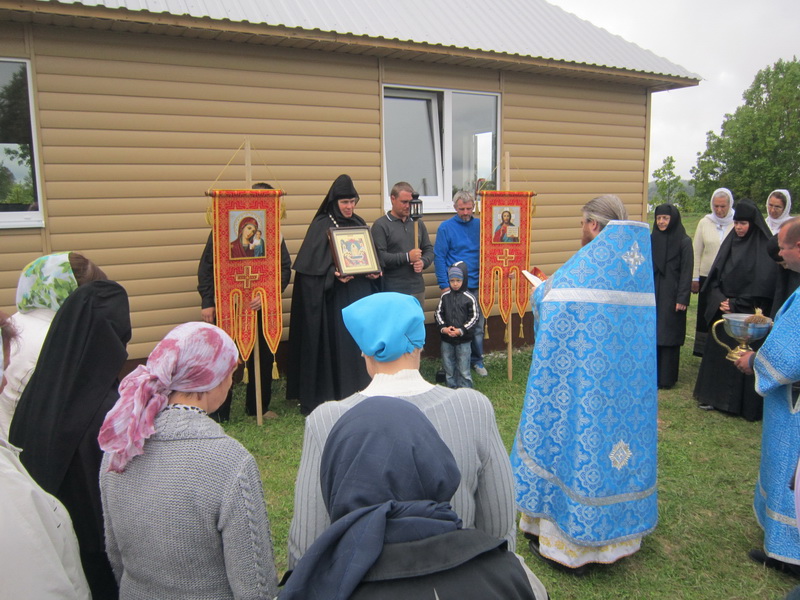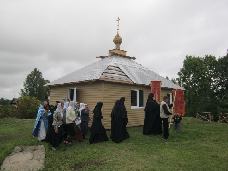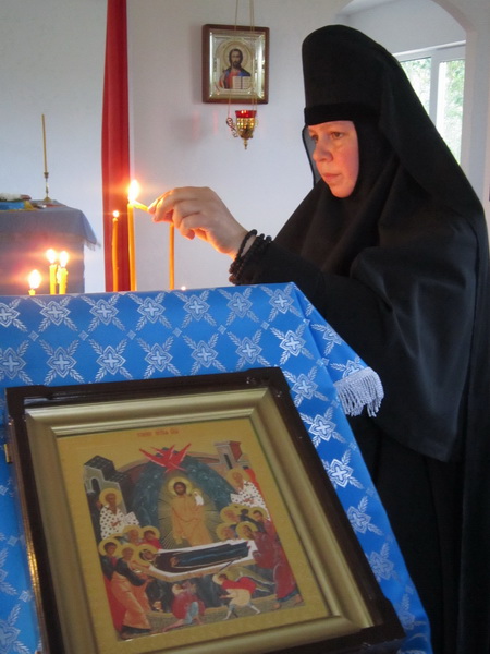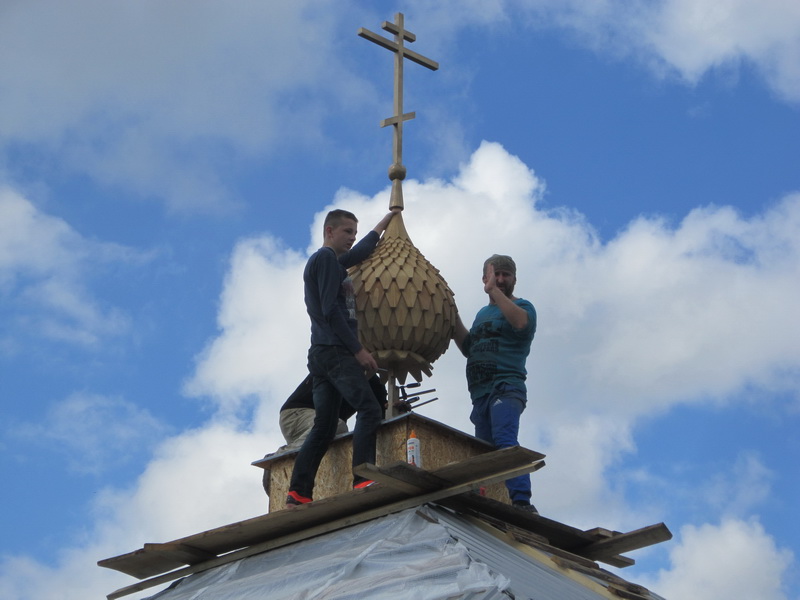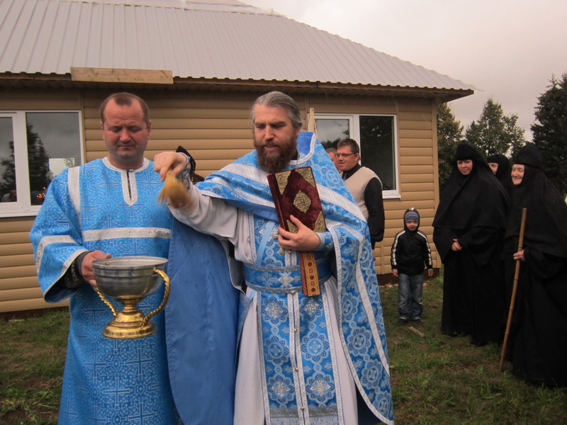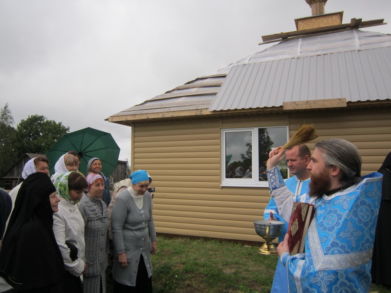 Всё лето, не покладая рук, трудились в Слободе мастера-строители Борис, Игорь и Михаил. Их стараниями палатка, наскоро возведённая в прошлом году на месте древнего Успенского собора, превратилась в часовню. Здесь и состоялось праздничное богослужение. Увенчал часовню небольшой деревянный куполок, сделанный талантливым прихожанином Свято-Георгиевского храма Леонидом Неверовским. 27 августа, накануне всенощного бдения, иерей Александр Голубев совершил чин освящения креста, сооружённого на куполе, затем купол и крест были установлены на часовне. Конечно, немногочисленным насельницам Свято-Успенской обители сложно было бы самим подготовить часовню и монастырскую территорию к празднику. Но откликнулись паломники, давние друзья нашей обители – из Витебска, Молодечно, Вилейки.