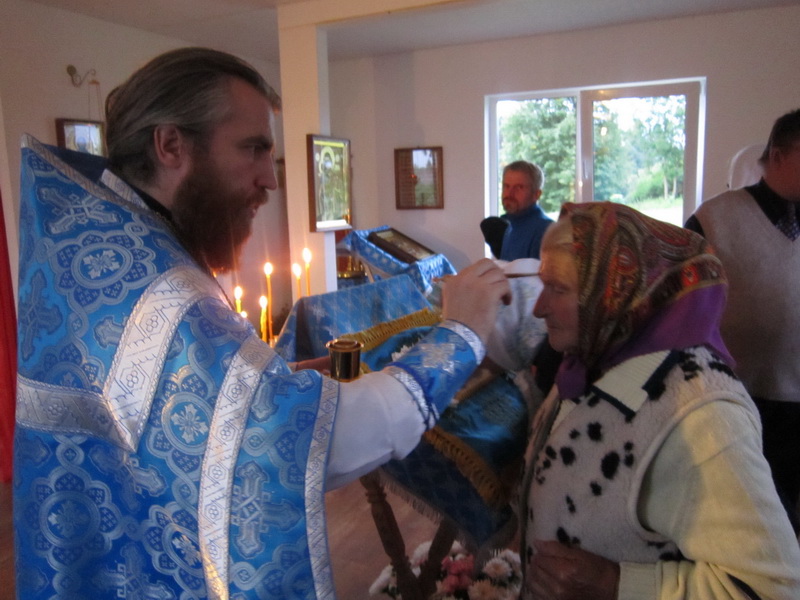 Божественная Литургия в день праздника началась в 10.00. Часовня была заполнена паломниками, приехавшими, в основном, из Витебска. За Литургией насельницы монастыря и почти все молящиеся сподобились Причащения Святых Таин. По заамвонной молитве обошли крестным ходом часовню, останавливаясь на четырёх сторонах для чтения Евангелия. Отец Александр поздравил всех с праздником Успения, а настоятельница обители монахиня Илария пригласила паломников на трапезу.