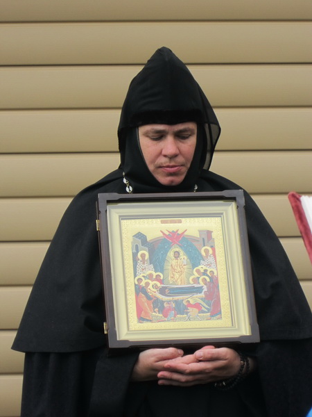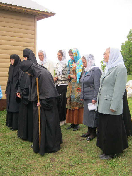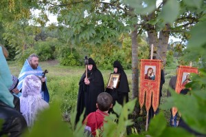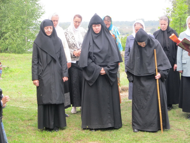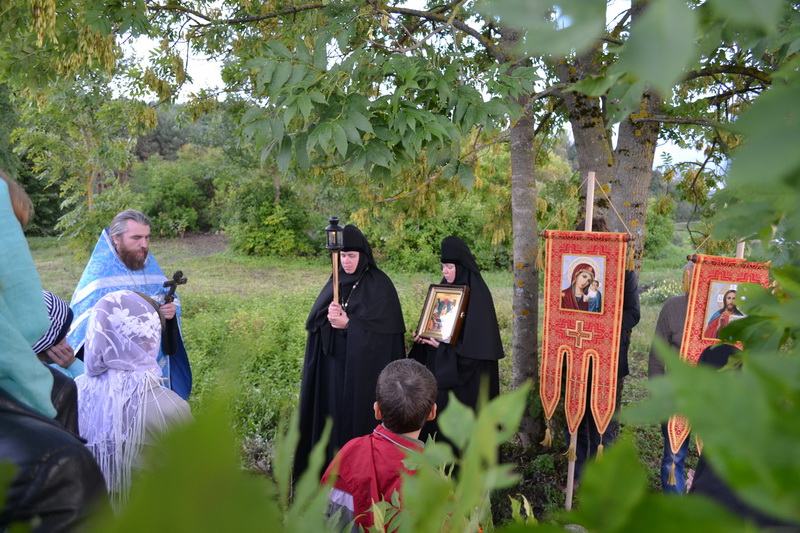 С молитвенным пением насельницы монастыря и паломники прошли крестным ходом по стенам древнего Успенского монастыря. На могиле первой игумении матушки Аристоклии иерей Александр отслужил заупокойную литию, помянув всех почивших отцев, братий и сестер святыя обители сея. В этот день они вместе с нами, живыми, вознесли свои молитвы к Божией Матери о возрождении поруганной святыни. И мы уповаем на предстательство Царицы Небесной, ибо Пресвятая Богородица «во успении мира не оставила».