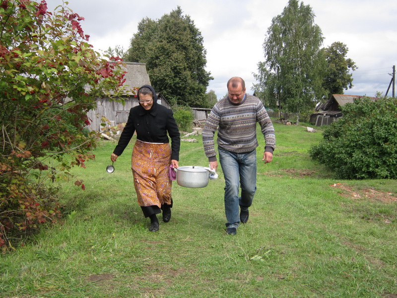 За богослужением пел приходской хор храма святой блаженной Ксении Петербургской в д. Берники под управлением Ольги Давыдько. Жители д. Слобода, приодевшись понаряднее, также пришли на службу. Старые люди, на десятки лет оторванные от Церкви, но сохранившие капельку веры в своих сердцах, были похожи на детей. Всё происходящее было для них удивительным и не очень понятным. Но со службы не уходили…