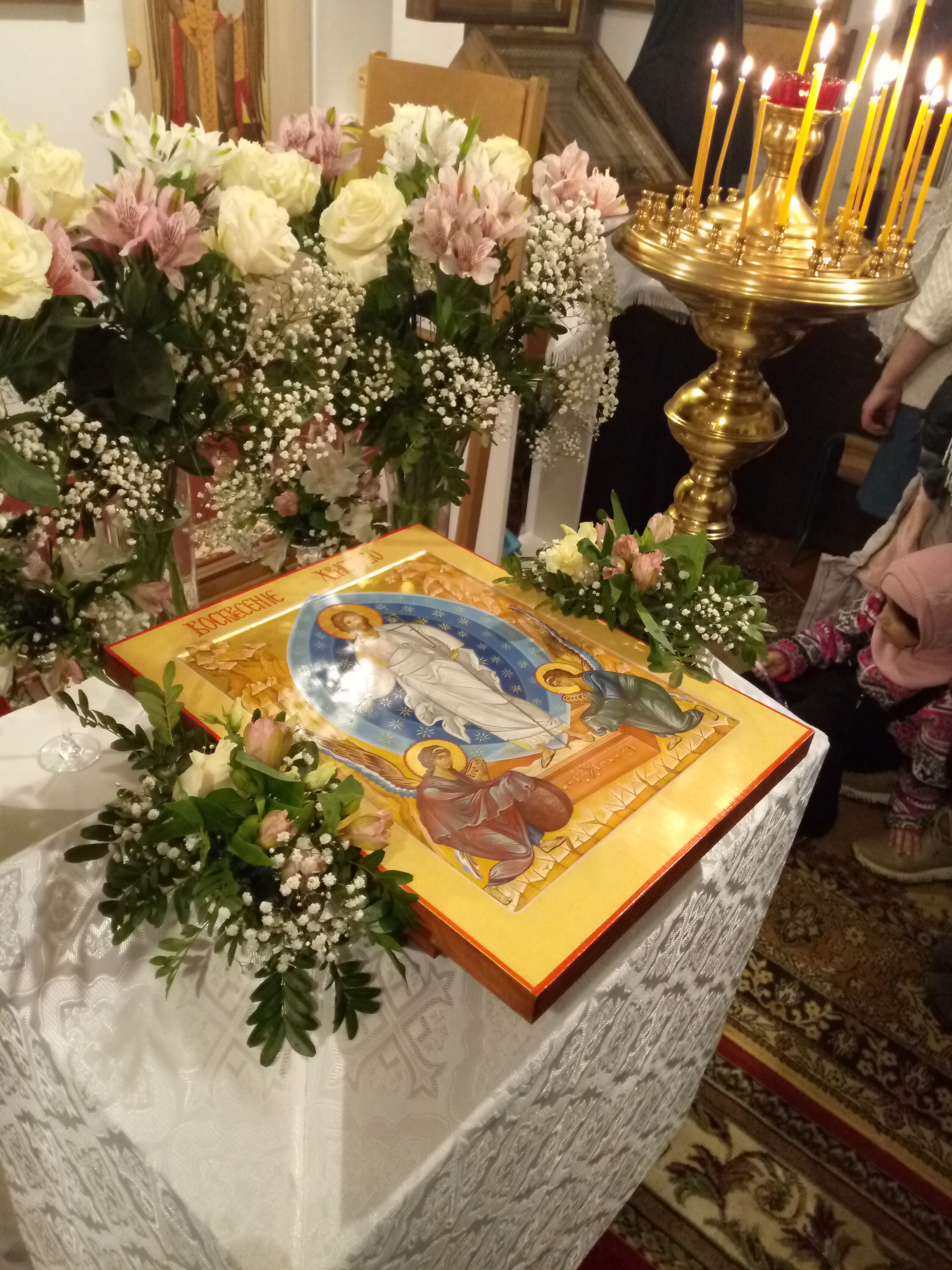 12 апреля вместе со всем православным миром в Свято-Успенском женском монастыре встретили Пасху Господню. Ночные богослужения возглавил служащий священник обители иер. Вячеслав (Шкеленок). Отслужив пасхальную службу, сестры и гости монастыря разделили праздничную трапезу, на которой Матушка игумения сказала слово: «Мир Христовым Воскресением разделился на «до» и «после»… Событие, которое перевернуло вообще всю историю. Бог стал плотью, жил вместе с нами, принял на Себя наши грехи, был распят и в третий день воскрес. Удивительное событие, потому что умом его понять невозможно, его можно принять только верой. И я вам, сестры, желаю всем стяжать вот эту веру — веру непоколебимую, веру постоянную, веру неизменчивую, веру глубокую в то, что воскрес Христос и воскреснем мы. Ведь сегодня мы празднуем не только воскресение Христово, мы празднуем то Воскресение, которое мы вкусим с вами. Господь дал человеку вечную жизнь, и через Воскресение Христово мы входим в рай, мы приобретаем вечную жизнь: придет время, когда мертвые воскреснут. Мы в Великую субботу читаем замечательную паремию, замечательное чтение пророческое, где пророк очень ярко, красочно рассказывает о том, как будет совершено Второе пришествие и всеобщее Воскресение на земле. Вот это всеобщее Воскресение, его зачатки мы празднуем сегодня: победу жизни над смертью. Жизнь победила смерть — все: нам нечего бояться. И почему наши предки, наши благочестивые родители, прародители, бабушки, прабабушки, прапрабабушки не боялись смерти — потому что эту веру они стяжали в своем сердце. Всем вам желаю этой веры. Христос воскресе!»