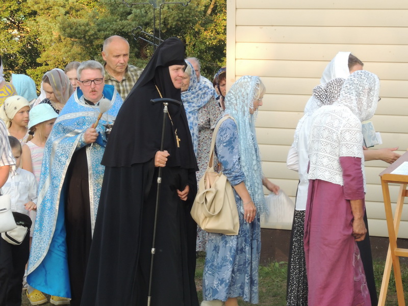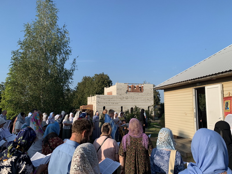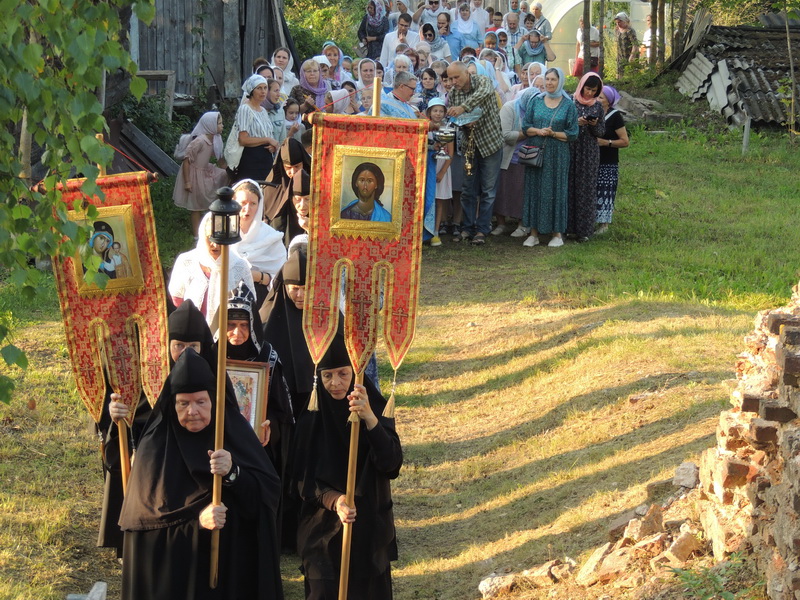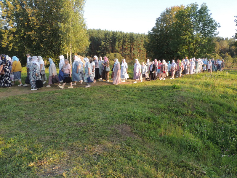 Вечером по традиции в монастыре служилась вечерня с всенародным пением акафиста Успению Божией Матери. Помолиться в обитель приехало множество паломников. После вечерни прошел большой крестный ход вокруг монастыря с литией на монастырском кладбище. На время торжеств трудами сестер и помощников была организована праздничная трапеза.